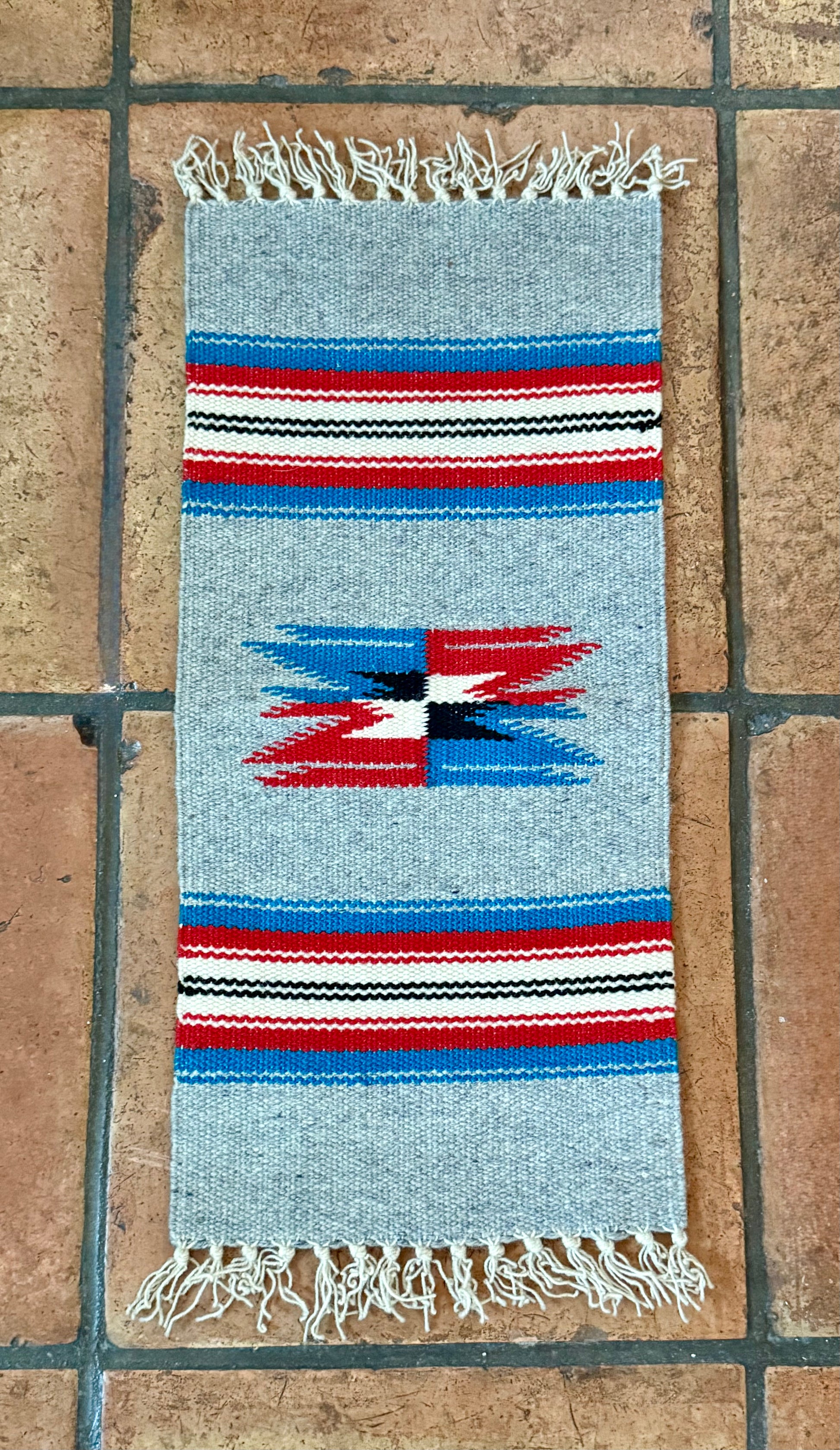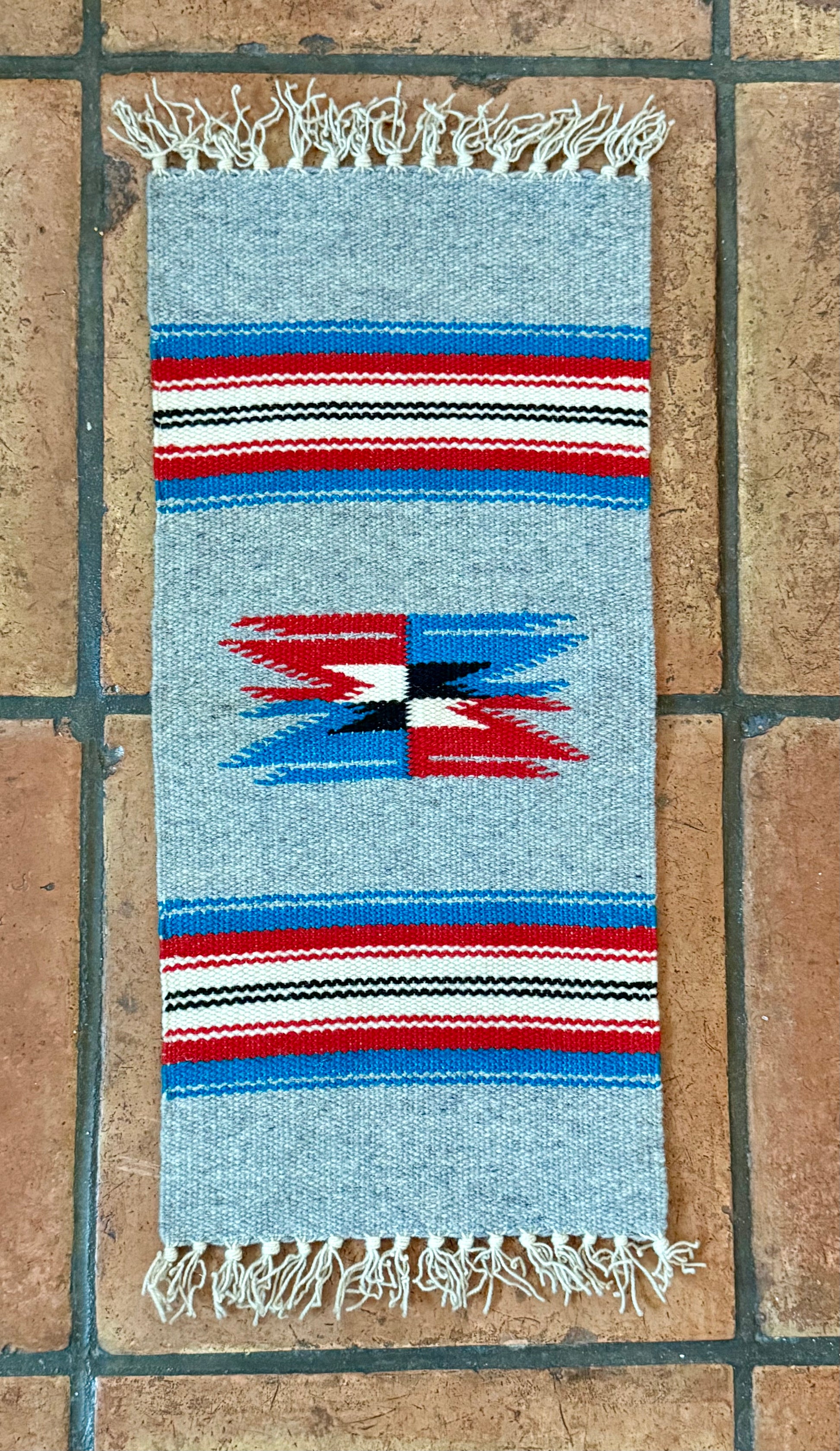 This Small Gray Chimayo is perfect for adding a touch of style to your home. Measuring at 19.5 inches by 9 inches, with fringe ranging from 1 to 1.5 inches, it is a runner style that is both decorative and functional. Elevate your space with this versatile and chic piece.