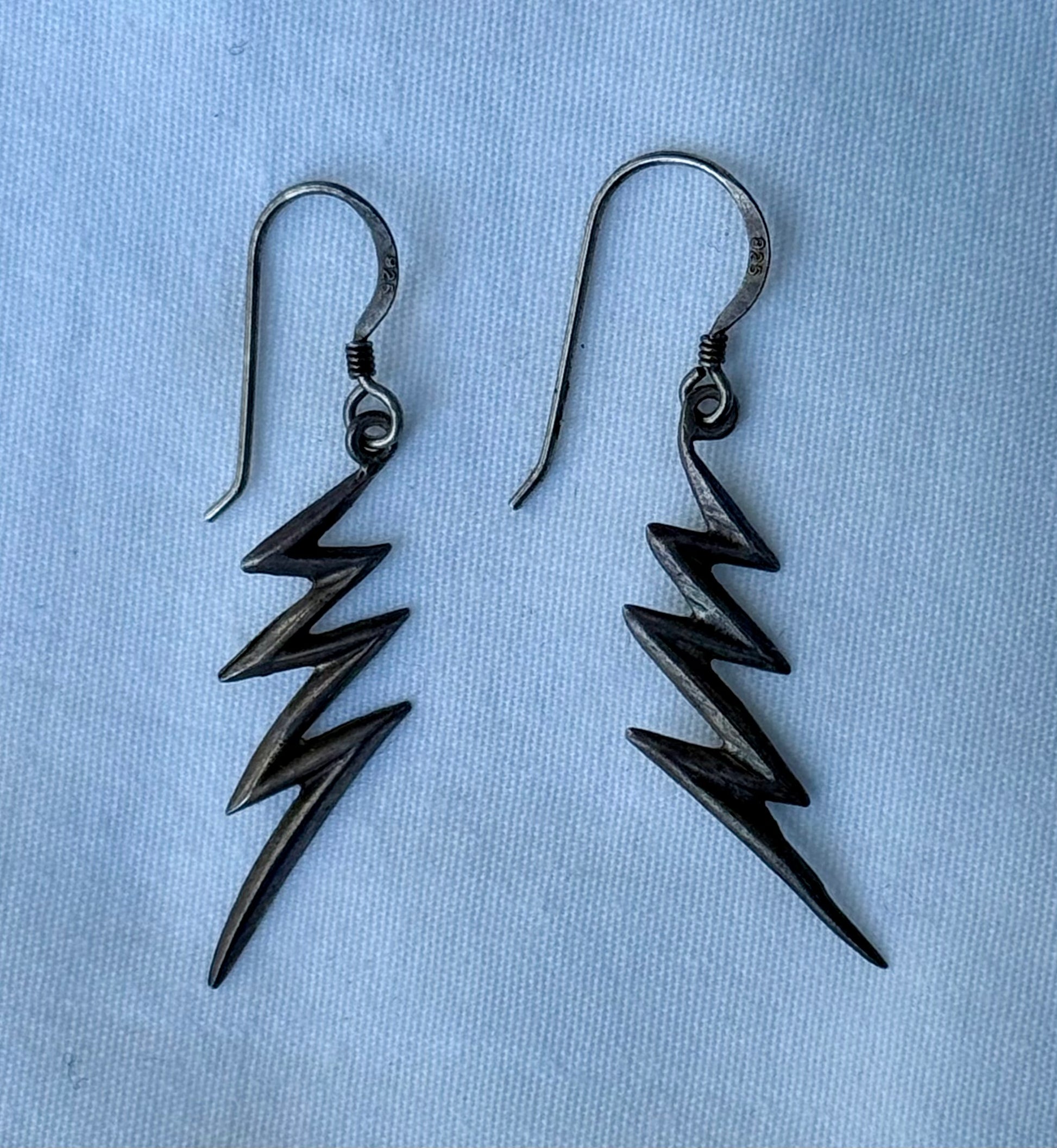 Expertly crafted from vintage sterling silver, these lightning bolt earrings add a unique and stylish touch to any outfit. At about 2 inches in length, they provide just the right amount of eye-catching detail.