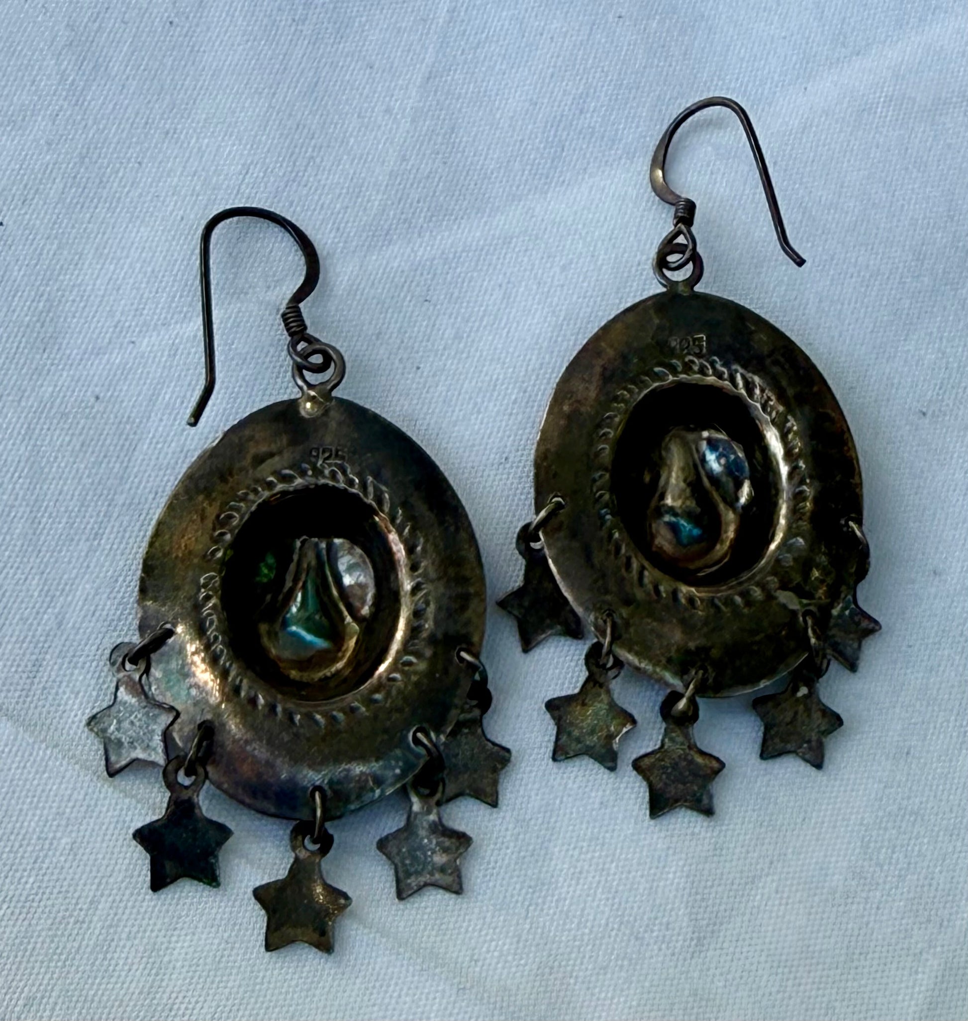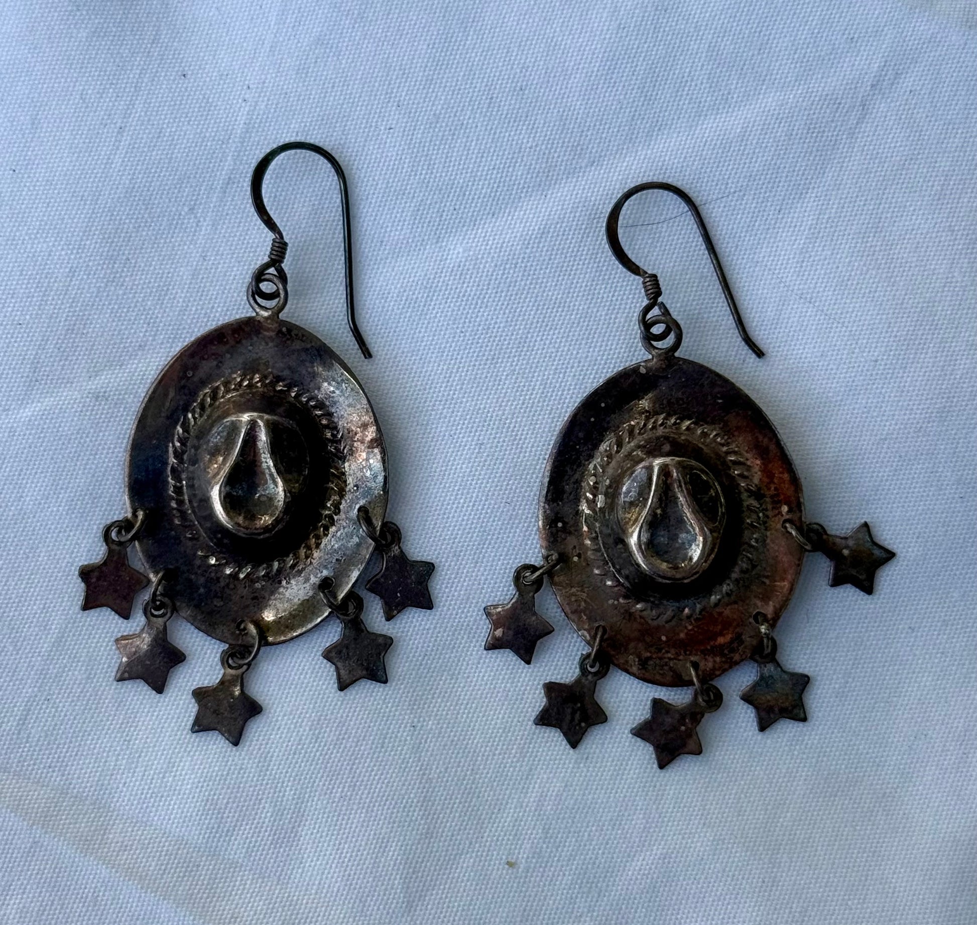 Enhance your western style with our Sterling Silver Cowboy Hat Earrings. These unique earrings feature a detailed cowboy hat design, accented with charming little stars that dangle about 2 inches. Perfect for any outting!