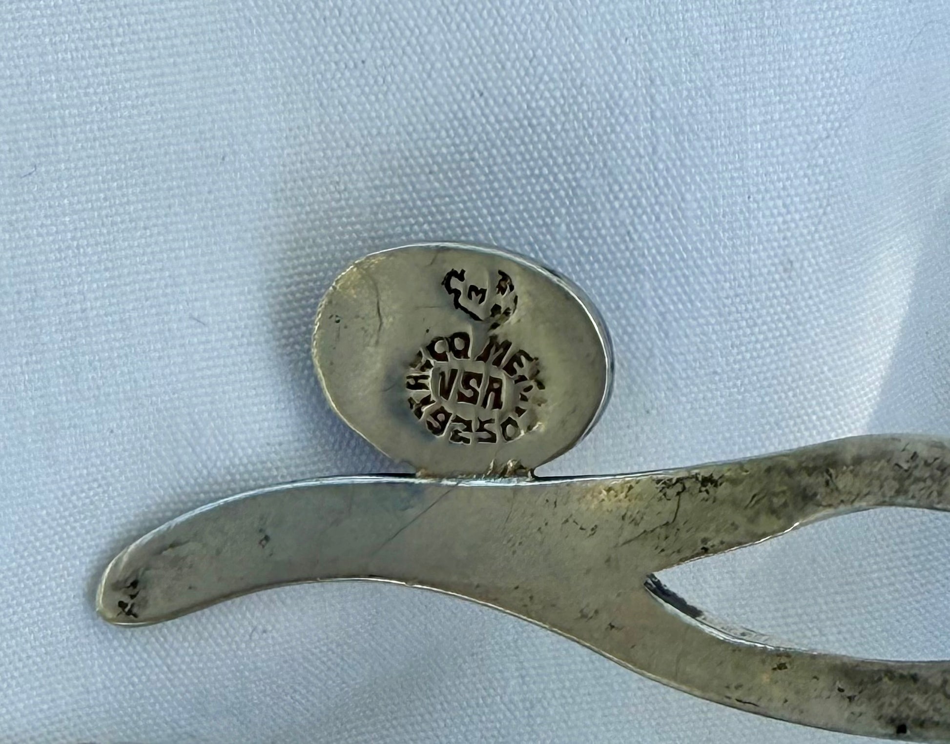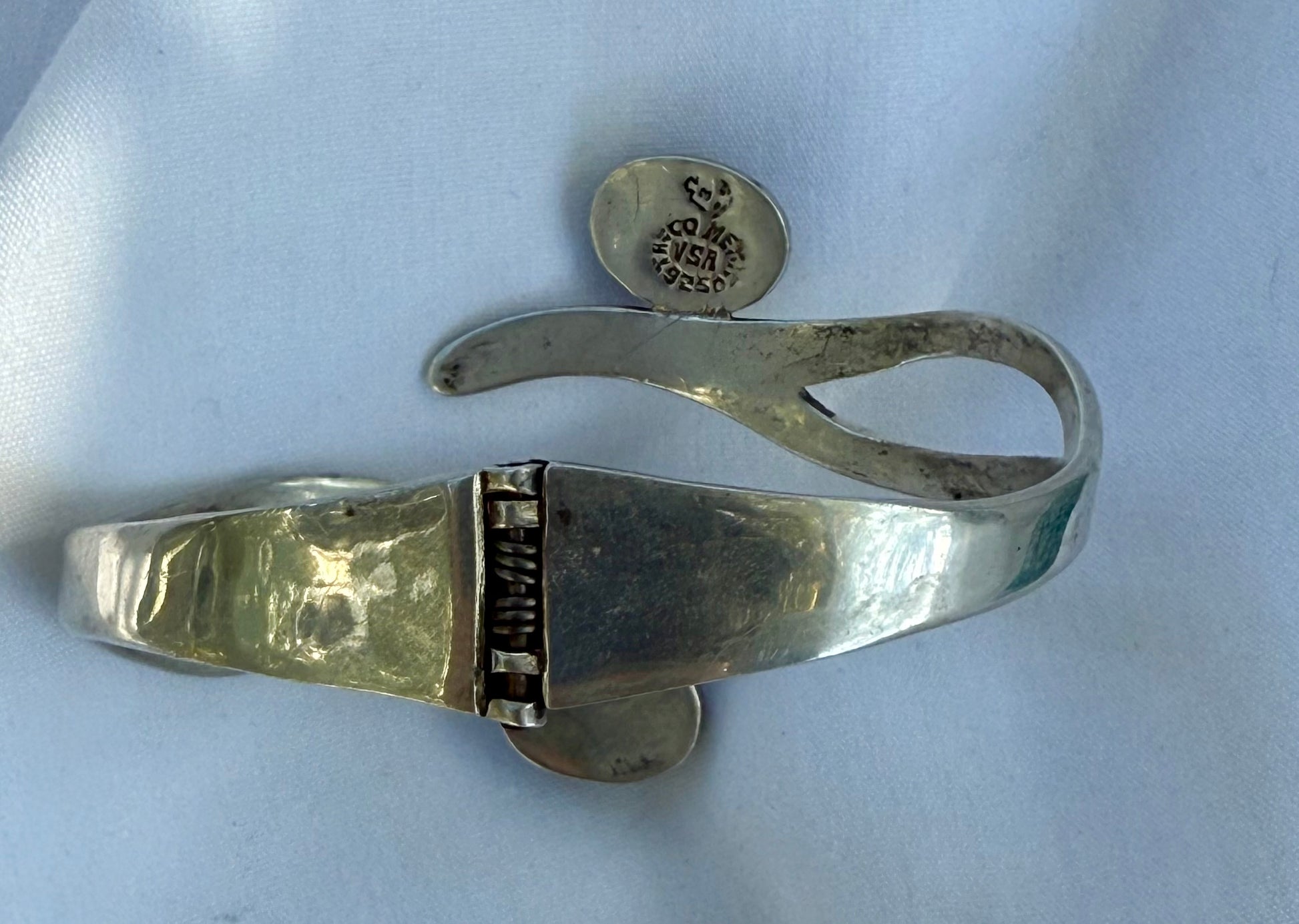 Own a piece of history with this vintage hinged bracelet, crafted with amethyst and sterling silver from Taxco in the 1940s-1950s. Signed by the artist, weighing 33 grams and measuring 8 3/4 inches, this bracelet is a unique addition to your collection.