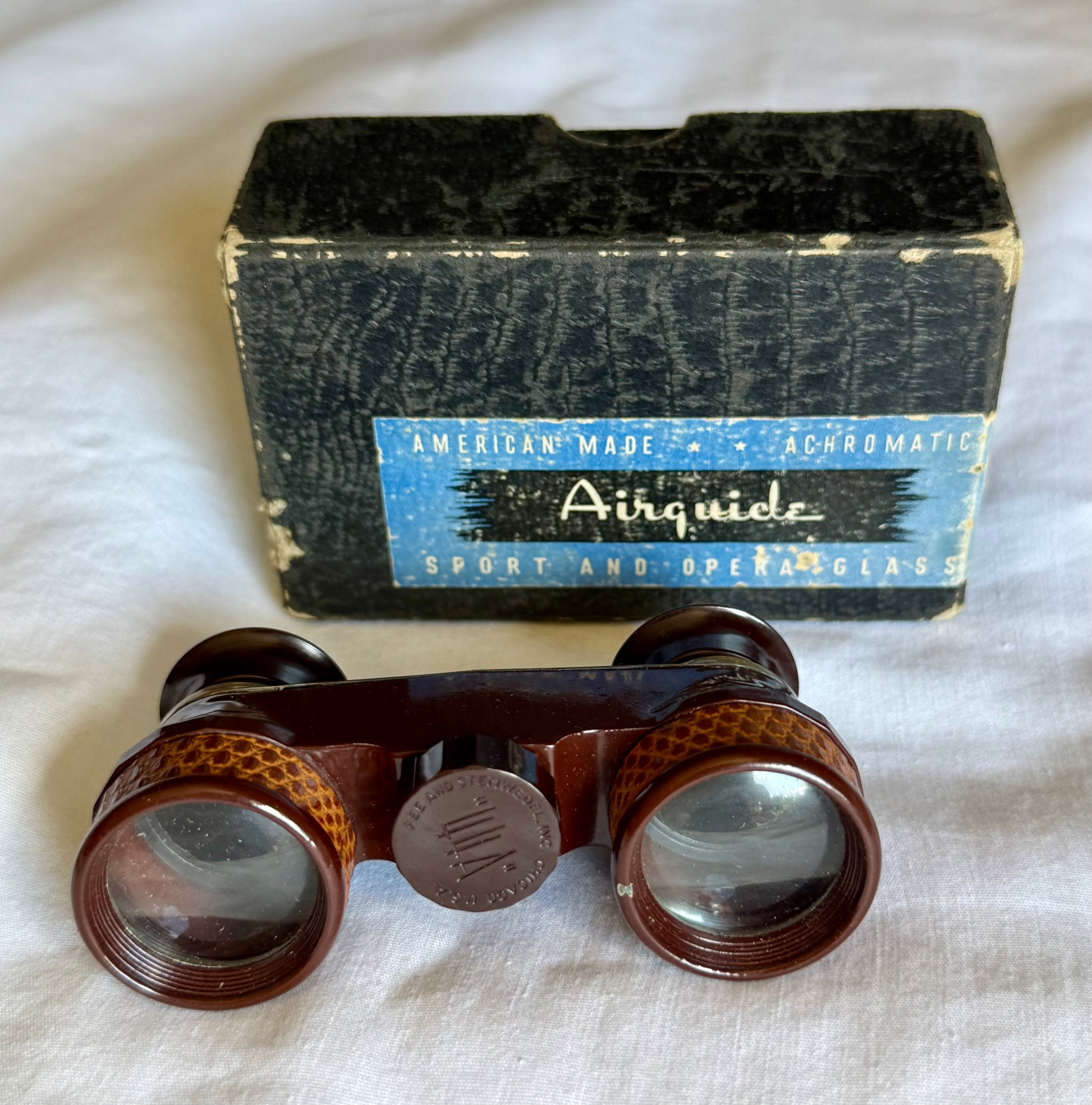 Discover the world with Vintage Airguide Binoculars. Compact and lightweight, these pocket binoculars are perfect for any adventure. The box measures 2.5" x 4", while the binoculars themselves are a convenient 1.75" x 3.5". Don't miss out on stunning views - grab your vintage binoculars today.