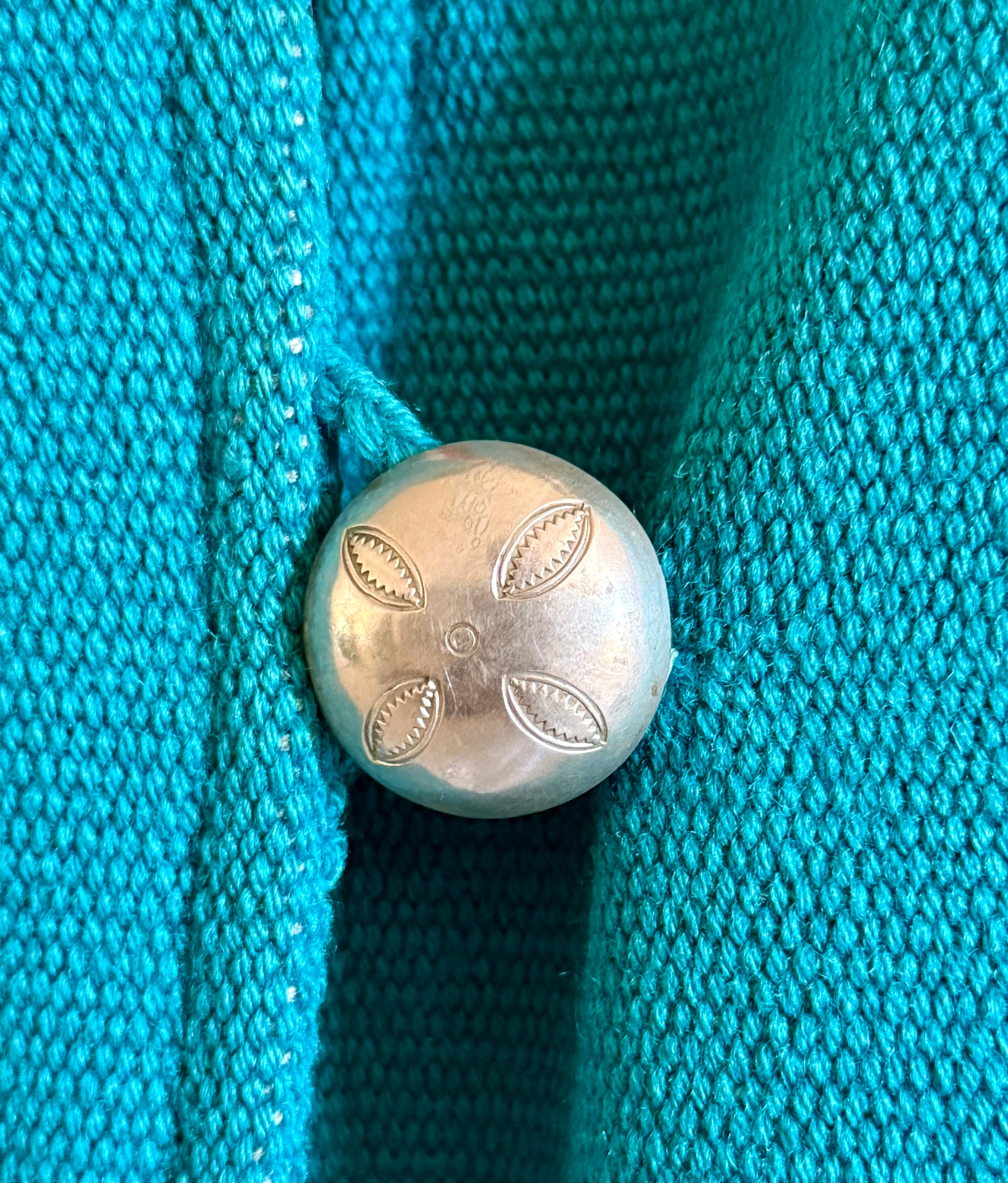Experience the one-of-a-kind style of the Vintage Chimayo Jacket by Granscraft. Crafted from a cozy blanket, this blue jacket adds a touch of vintage charm to any outfit. Stay warm and stand out in this unique piece.