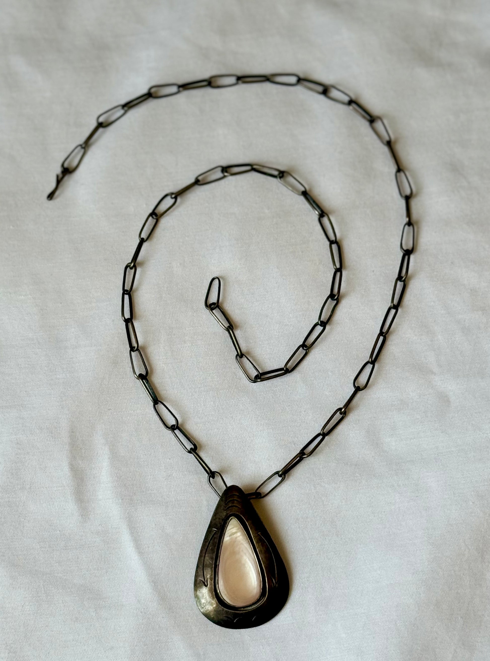 "Add a touch of vintage charm to your outfit with this handmade chain and pendant. A one-of-a-kind piece that's sure to catch some attention!